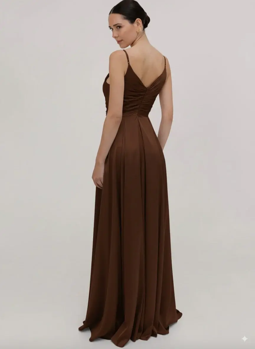 The Isla Satin Bridesmaid Dress in terracotta, a romantic, flattering choice for modern weddings. Designed to combine luxury and comfort, this stunning gown ensures your bridesmaids look and feel their best as they stand beside you on your special day. Available to order from £139